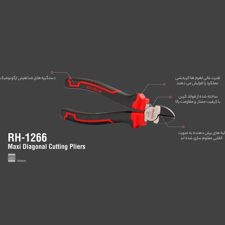سیمچین 6 اینچ مکسی مدلRH-1266 رونیکس، دندانهها و فکهای تقویتشدهای دارد که موجب افزایش مقاومت ابزار شده و قطعات کار را ثابت نگه میدارد. جنس بدنه این ابزار دستی، از کربن استیل با مقاومت بالا بوده و به دلیل خاصیت ضد زنگ و ضد خوردگی، در شرایط پرفشار و مرطوب قابل استفاده است. دسته این سیمچین، مانع از لغزش و تعریق ابزار در دست افراد میشود و تسلط کافی را در هنگام کار برای افراد فراهم میکند.