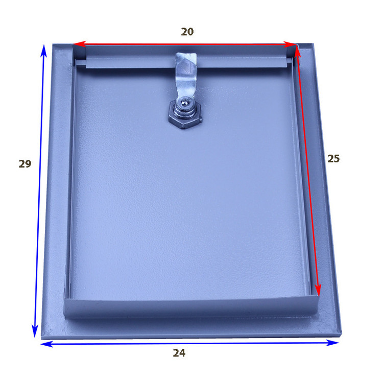 دریچه فلزی توکار یا بدرب پوش فلزی محصولی از گروه تابلوهای برق محسوب میشود. این کالا با استفاده از ورقهای مرغوب آهنی ساخته شده و در انتها با رنگ کورهای الکترواستاتیک پوشیده شده است. این رنگ علاوه بر زیبا کردن این جعبه تقسیم دوام و پایداری آن را نیز بالا برده و از آن در برابر پوسیدگی و زنگ زدگی محافظت میکند. از این محصول اغلب برای پوشاندن فضای اتصالات و انشعابات برقی و...استفاده میشود. درسچه فلزی معمولا در ساختمانها، کارگاهها، پاساژها و … در محلی که لولههای برق و سیمکشیها به یکدیگر رسیدهاند قرار میگیرد. این امر علاوه بر جلوگیری از ظاهر زشت سیمهای زیاد و داخل هم پیچیده، هم جلوه زیبایی به محل میدهد . نمای جلویی دریچه توکار دارای 2 سانتیمتر لبه از طرفین و بالا پایین است که این امر نیز برای جلوگیری از فرورفتن محصول داخل دیوار و زیبایی کار است. لولای بکار رفته برای درب محصول از نوع نواری میباشد که قابلیت باز شدن 180 درجه درب را فراهم میسازد.