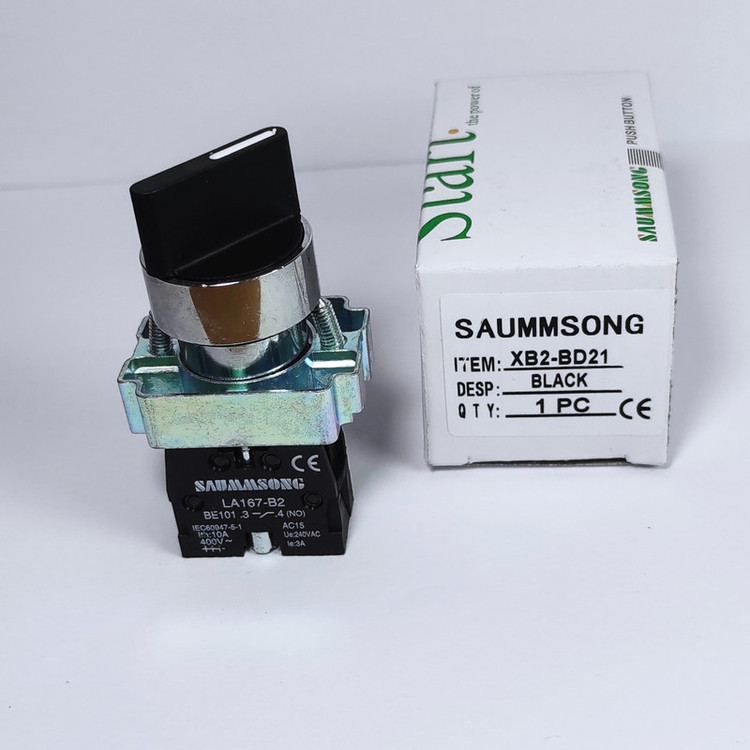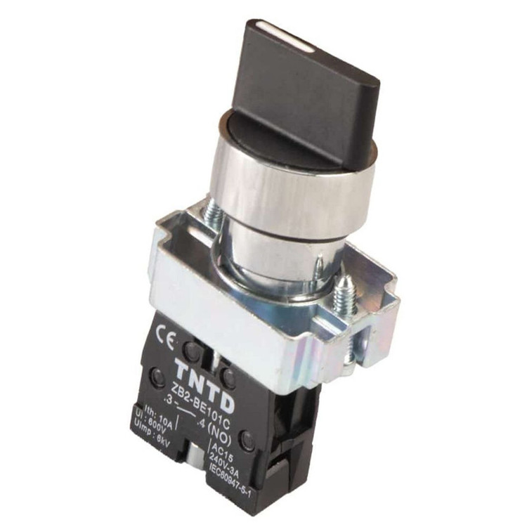 کلید فرمانی یک طرفه فلزی که با کد فنی XB2-BD21 شناخته میشود کلید فرمانی یک طرفه در بیشتر مواقع جهت نصب در تابلو های برق صنعتی برای کلید روشن و خاموش استفاده میشود کلید فرمانی یک طرفه از سه قسمت اصلی ساخته شده است که عبارتند از کله گلی : کلید چرخشی مشکی رنگ که به یک طرف میچرخد بدنه : فلزی که کله گلی را به کنتاکت متصل میکند کنتاکت: وسیله ای که از کله گی فرمان قطع و وصل را میگیرد و جریان را قطع یا وصل میکند.