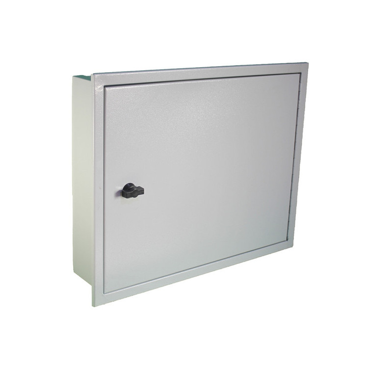 جعبه تقسیم 40x50فلزی توکار یا باکس تقسیم برق محصولی از گروه تابلوهای برق محسوب میشود. این کالا با استفاده از ورقهای مرغوب آهنی ساخته شده و در انتها با رنگ کورهای الکترواستاتیک پوشیده شده است. این رنگ علاوه بر زیبا کردن این جعبه تقسیم دوام و پایداری آن را نیز بالا برده و از آن در برابر پوسیدگی و زنگ زدگی محافظت میکند. از این محصول اغلب برای گرفتن اتصالات و انشعابات برقی در محل استفاده میشود. جعبه تقسیم معمولا در ساختمانها، کارگاهها، پاساژها و … در محلی که لولههای برق و سیمکشیها به یکدیگر رسیدهاند قرار میگیرد. از این رو لولههای برق و سیمها از طریق فضای باز موجود در بالا و پایین جعبه تقسیم برق وارد این باکس فلزی میشوند. این امر علاوه بر جلوگیری از ظاهر زشت سیمهای زیاد و داخل هم پیچیده، هم جلوه زیبایی به محل میدهد و هم میتوان با استفاده از ترمینالهایی که داخل جعبه تقسیم 40x50 فلزی تعبیه میگردد انشعابات و اتصالات برقی را بصورت اصولی اجرا کرد. همچنین این باکس فلزی از آسیب دیدن و خطرهای احتمالی قطعات و تجهیزات بکار رفته در محل اتصالات جلوگیری میکند. سینی قسمت داخلی این باکس فلزی تقسیم یعنی جایی که ترمینالها و یا تجهیزات برقی دیگر نصب میشود، بگونهایست که از پشت محصول دارای تو رفتگی است. این تو رفتگی باعث میشود که با پیچ کردن و اتصال تجهیزات برقی داخل جعبه تقسیم، پیچها از پشت به محل نصب گیر نکند و مزاحم نصب محصول نشود. نمای جلویی جعبه تقسیم 40x50 توکار دارای 2 سانتیمتر لبه از طرفین و بالا پایین است که این امر نیز برای جلوگیری از فرورفتن محصول داخل دیوار و زیبایی کار است. لولای بکار رفته برای درب محصول از نوع نواری میباشد که قابلیت باز شدن 180 درجه درب را فراهم میسازد. عمق داخلی این جعبه تقسیم فلزی 11 سانتیمتر میباشد که امکان نصب انواع تجهیزات برقی داخل آن را بوجود میآورد.