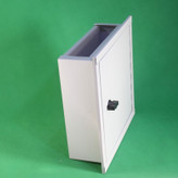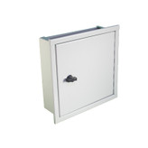 جعبه تقسیم 30x30 فلزی توکار یا باکس تقسیم برق محصولی از گروه تابلوهای برق محسوب میشود. این کالا با استفاده از ورقهای مرغوب آهنی ساخته شده و در انتها با رنگ کورهای الکترواستاتیک پوشیده شده است. این رنگ علاوه بر زیبا کردن این جعبه تقسیم دوام و پایداری آن را نیز بالا برده و از آن در برابر پوسیدگی و زنگ زدگی محافظت میکند. از این محصول اغلب برای گرفتن اتصالات و انشعابات برقی در محل استفاده میشود. جعبه تقسیم معمولا در ساختمانها، کارگاهها، پاساژها و … در محلی که لولههای برق و سیمکشیها به یکدیگر رسیدهاند قرار میگیرد. از این رو لولههای برق و سیمها از طریق فضای باز موجود در بالا و پایین جعبه تقسیم برق وارد این باکس فلزی میشوند. این امر علاوه بر جلوگیری از ظاهر زشت سیمهای زیاد و داخل هم پیچیده، هم جلوه زیبایی به محل میدهد و هم میتوان با استفاده از ترمینالهایی که داخل جعبه تقسیم 30x30 فلزی تعبیه میگردد انشعابات و اتصالات برقی را بصورت اصولی اجرا کرد. همچنین این باکس فلزی از آسیب دیدن و خطرهای احتمالی قطعات و تجهیزات بکار رفته در محل اتصالات جلوگیری میکند. سینی قسمت داخلی این باکس فلزی تقسیم یعنی جایی که ترمینالها و یا تجهیزات برقی دیگر نصب میشود، بگونهایست که از پشت محصول دارای تو رفتگی است. این تو رفتگی باعث میشود که با پیچ کردن و اتصال تجهیزات برقی داخل جعبه تقسیم، پیچها از پشت به محل نصب گیر نکند و مزاحم نصب محصول نشود. نمای جلویی جعبه تقسیم 30x30 توکار دارای 2 سانتیمتر لبه از طرفین و بالا پایین است که این امر نیز برای جلوگیری از فرورفتن محصول داخل دیوار و زیبایی کار است. لولای بکار رفته برای درب محصول از نوع نواری میباشد که قابلیت باز شدن 180 درجه درب را فراهم میسازد. عمق داخلی این جعبه تقسیم فلزی 11 سانتیمتر میباشد که امکان نصب انواع تجهیزات برقی داخل آن را بوجود میآورد.