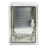 تابلوهای برق برای نصب تجهیزات الکتریکی و فیوزها کاربرد دارند . اغلب تابلوهای برق از جنس فلز ساخته می شوند که علاوه بر رسانا بودن ، سنگین بوده و از عایق سازی مناسب در برابر آب باران و رطوبت برخوردار نمی باشند . تابلو برق مدل TET-TR3525 از استاندارد IP66 برخوردار بوده و نفوذ آب باران و گرد و غبار و ... در آن غیرممکن می باشد که همین مزیت باعث حفاظت بهتر تجهیزات الکتریکی در برابر آب باران و یا هر مایع دیگری شده و علاوه بر آن الزامات ایمنی و حفاظت از جان افراد در برابر برق گرفتگی نیز در آن به بهترین صورت رعایت می شود . همچنین بدنه پلاستیکی مقاوم در برابر اشتعال بوده و نیز در مقابل اشعه UV و تابش آفتاب مقاوم می باشد . برای تابلوی مزبور یک آچار در جعبه قرار داده شده است که با آن می توان جعبه را قفل کرد . برای نصب جعبه از چهار قطعه و تعدادی پیچ همراه دستگاه ارائه شده است که بعد از نصب آنها جعبه بصورت کشویی روی آن نصب می شود . در قسمت انتهایی جعبه با یک ورق فولادی پوشانده شده است تا تجهیزات الکتریکی به آسانی روی آن نصب شوند .ابعاد جعبه 35 در 25 در 15 سانتیمتر است . تفاوت این مدل با مدل TET-3525 شفاف بودن در آن بوده و تجهیزات داخل آن قابل رویت می باشند.