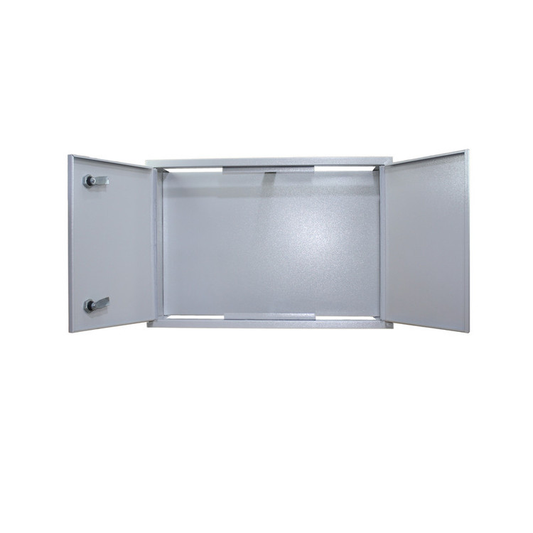 جعبه تقسیم 40x60 فلزی توکار یا باکس تقسیم برق محصولی از گروه تابلوهای برق محسوب میشود. این کالا با استفاده از ورقهای مرغوب آهنی ساخته شده و در انتها با رنگ کورهای الکترواستاتیک پوشیده شده است. این رنگ علاوه بر زیبا کردن این جعبه تقسیم دوام و پایداری آن را نیز بالا برده و از آن در برابر پوسیدگی و زنگ زدگی محافظت میکند. از این محصول اغلب برای گرفتن اتصالات و انشعابات برقی در محل استفاده میشود. جعبه تقسیم معمولا در ساختمانها، کارگاهها، پاساژها و … در محلی که لولههای برق و سیمکشیها به یکدیگر رسیدهاند قرار میگیرد. از این رو لولههای برق و سیمها از طریق فضای باز موجود در بالا و پایین جعبه تقسیم برق وارد این باکس فلزی میشوند. این امر علاوه بر جلوگیری از ظاهر زشت سیمهای زیاد و داخل هم پیچیده، هم جلوه زیبایی به محل میدهد و هم میتوان با استفاده از ترمینالهایی که داخل جعبه تقسیم 40x60 فلزی تعبیه میگردد انشعابات و اتصالات برقی را بصورت اصولی اجرا کرد. همچنین این باکس فلزی از آسیب دیدن و خطرهای احتمالی قطعات و تجهیزات بکار رفته در محل اتصالات جلوگیری میکند. سینی قسمت داخلی این باکس فلزی تقسیم یعنی جایی که ترمینالها و یا تجهیزات برقی دیگر نصب میشود، بگونهایست که از پشت محصول دارای تو رفتگی است. این تو رفتگی باعث میشود که با پیچ کردن و اتصال تجهیزات برقی داخل جعبه تقسیم، پیچها از پشت به محل نصب گیر نکند و مزاحم نصب محصول نشود. نمای جلویی جعبه تقسیم 40x60 توکار دارای 2 سانتیمتر لبه از طرفین و بالا پایین است که این امر نیز برای جلوگیری از فرورفتن محصول داخل دیوار و زیبایی کار است. لولای بکار رفته برای درب محصول از نوع نواری میباشد که قابلیت باز شدن 180 درجه درب را فراهم میسازد. عمق داخلی این جعبه تقسیم فلزی 11 سانتیمتر میباشد که امکان نصب انواع تجهیزات برقی داخل آن را بوجود میآورد.