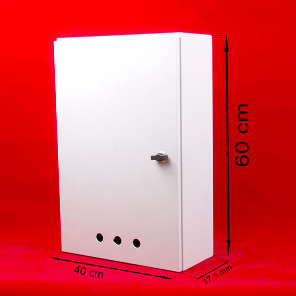 تابلو برق یکی از تجهیزات الکتریکی به شمار می رود. تابلو برق در واقع محفظه ای است برای نگهداری و محافظت از تجهیزات الکتریکی که ایمنی افراد را در حین کار افزایش می دهد. تابلوهای برق در ابعاد و اندازه ها و انواع متنوعی تولید شده است. این تابلو از نوع روکار و جنس فلز می باشد. رنگ تابلو پودری الکترواستاتیک با کیفیت است. ابعاد تابلو 40 در 60 در 17.5 سانتیمتر می باشد و ضخامت ورق تابلو 0.8 میلیمتر است.